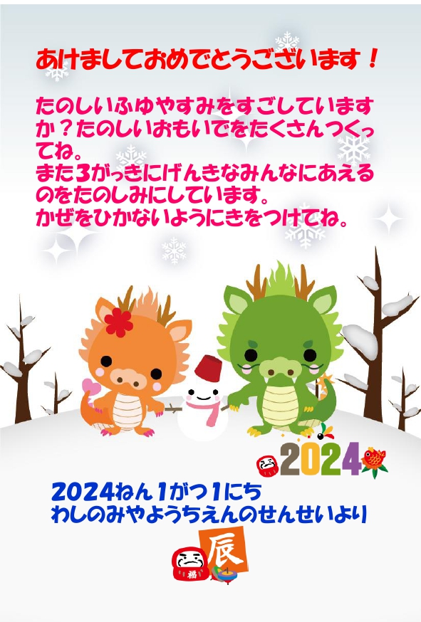 令和6年度 3年保育(1号認定児)受付終了について